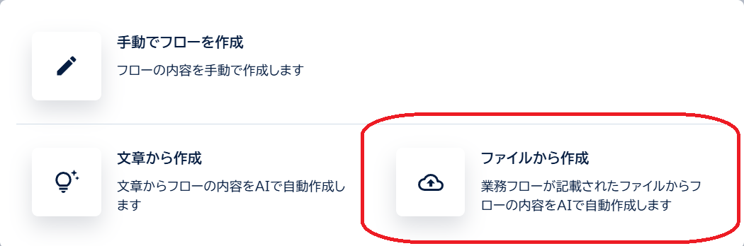 | ファイルインポート生成 | AIフロー/マニュアル生成 | 手動作成 |