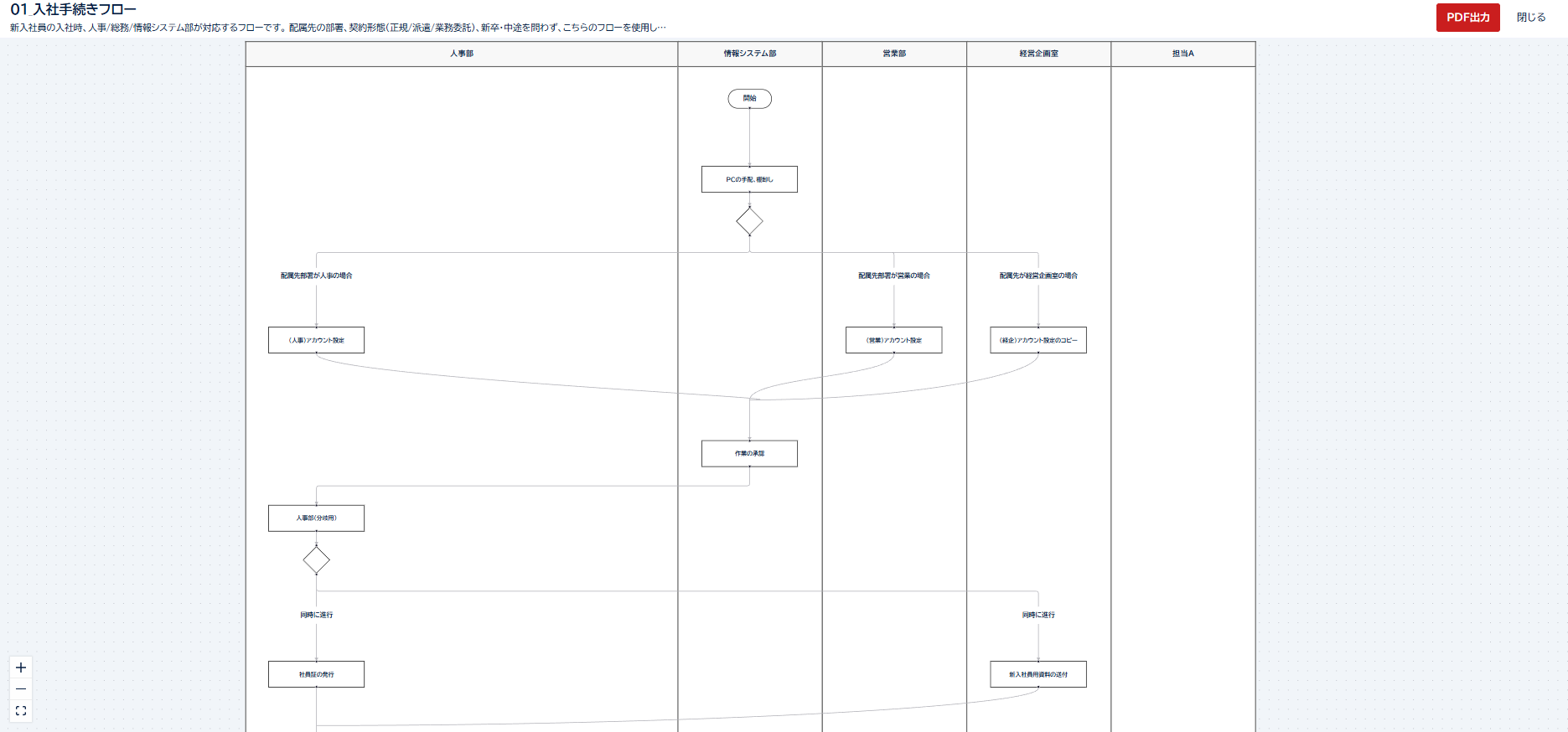 複数の部署が関わる業務では、「誰がボールを持っているか」が曖昧になりがちです。octpathのスイムレーン形式は、この問題を視覚的に、かつ実務的に解決します。