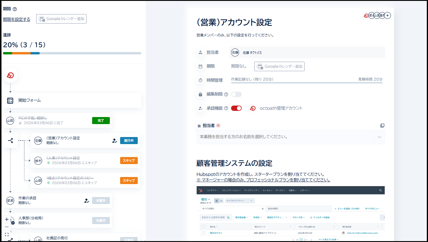 octpathなら、画面のチェック項目をポチポチと埋めるだけで、次にやるべき作業やルートが自動で切り替わります。「次はどうすればいいんだっけ?」と迷うストレスを、システムがまるごと肩代わりしてくれるんです。仕事のバトンも、終わった瞬間に「次は君の番だよ」と自動で渡される。このスムーズな感覚こそが、業務が止まらない秘訣です。